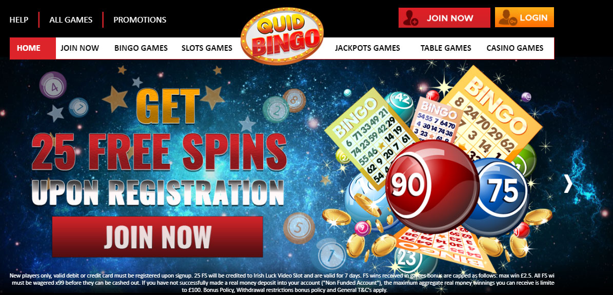 Quid Bingo has a 25 Free Spins with no deposit offer for new players. You do have to enter your bank or credit card details, but there is no obligation to make a deposit. Upon entering your details, you will be credited with 25 Free Spins bonus funds, which can be used to play Quid Bingo straight away.